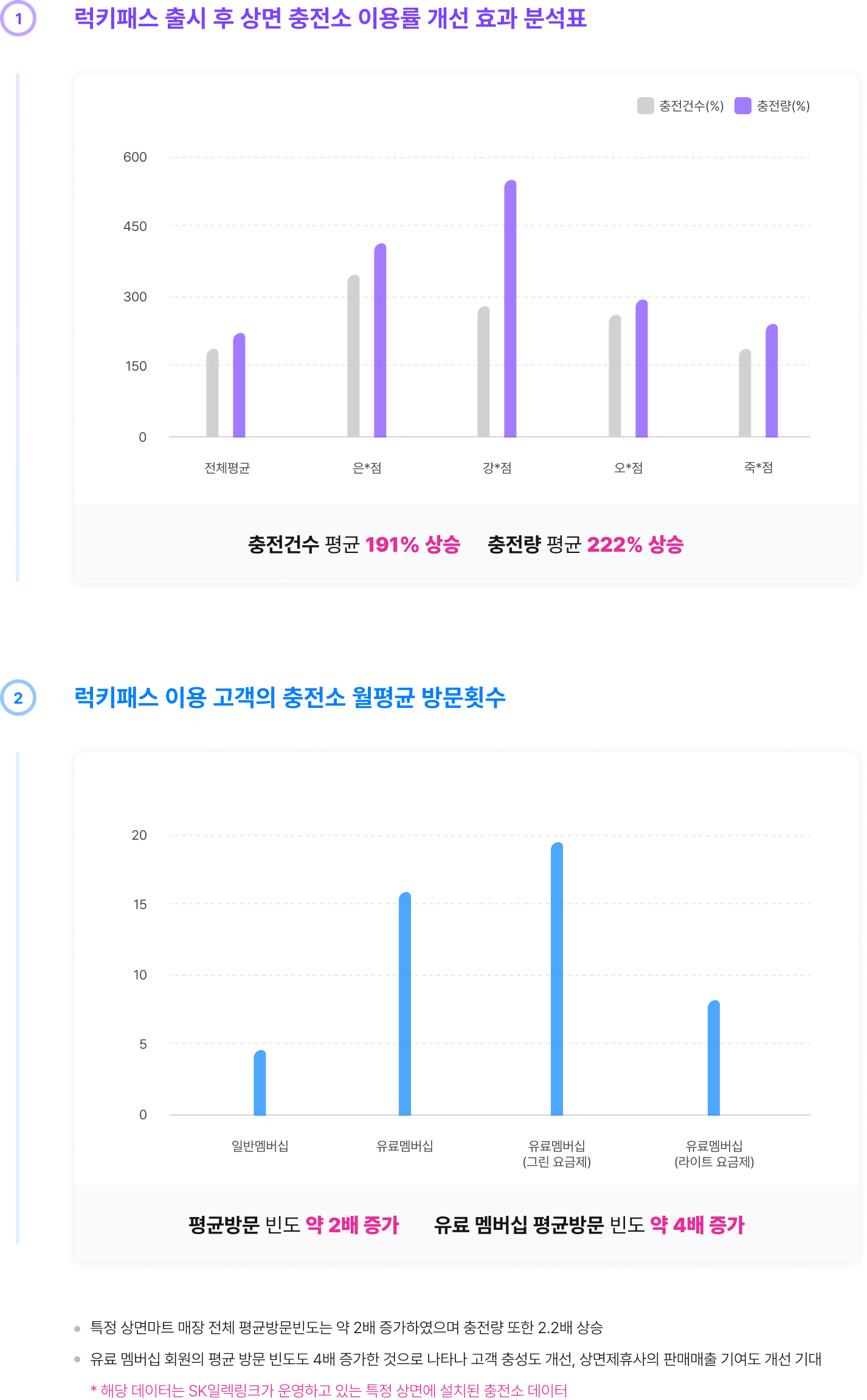 재방문율이 높은 자사의 유료멤버십 회원 지속 방문 유인*월평균 15.7회 방문으로 일반 전기차 이용 고객 대비 약 4배 정도 방문율 높음